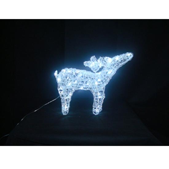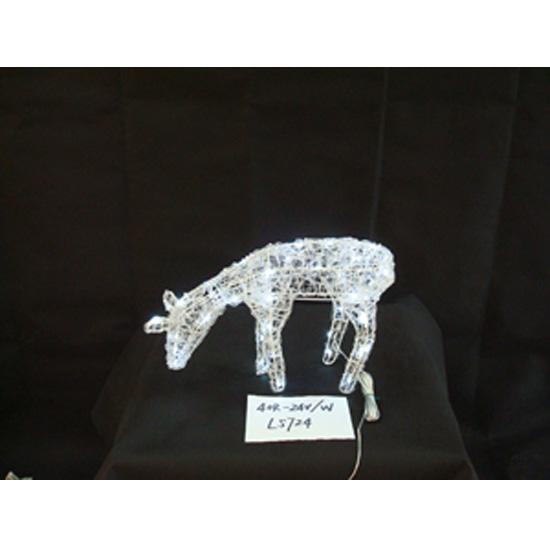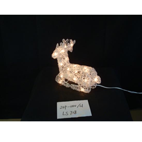 Showcased is a light-up reindeer-shaped Christmas ornament. The reindeer kneels down peacefully, which makes it a great ornament to be installed to decorate shopping malls, offices and other indoor or outdoor spaces for a heart-warming atmosphere. Made of polystyrene with PS plastic grain in a transparent and crystal style, the reindeer cover is sturdy and durable.