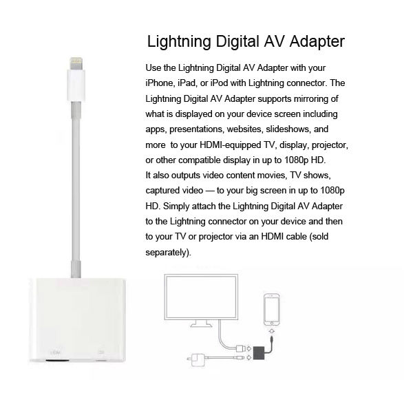 4. Use it with iphone or ipad /ipod touch to enjoy your favorite local or online entertainment easily on your HDTV or projector in up to 1080p HD display.Movies,