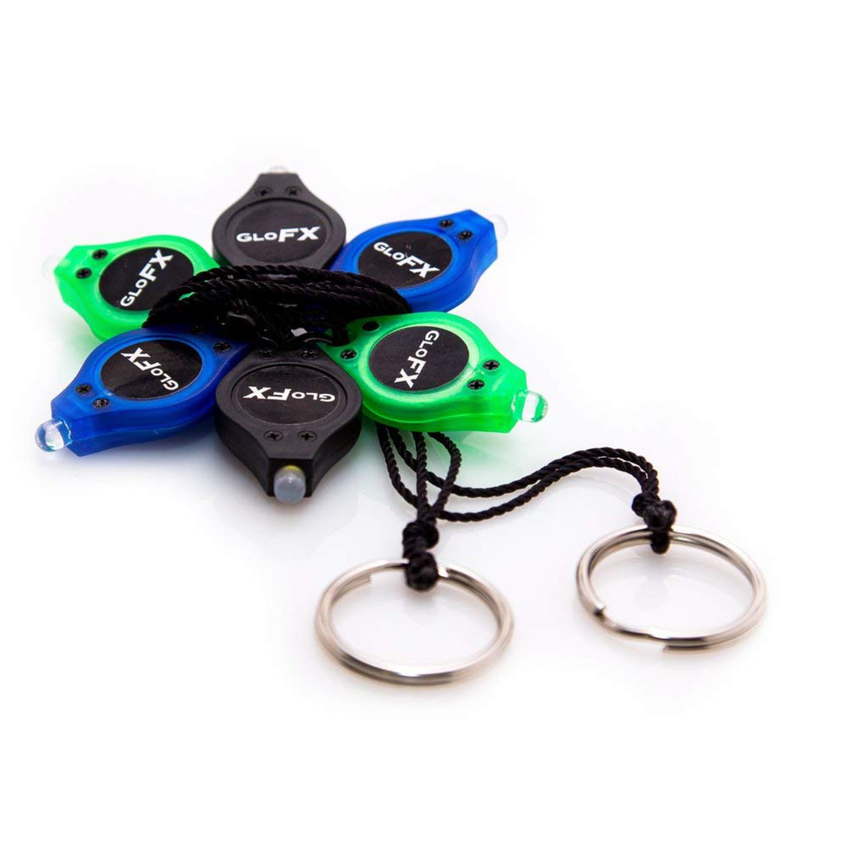 6 Ultra-Bright LED microlights: 2 Blue Ribbon, 2 Green Ribbon, and 2 Blue, White, & Green Strobe
