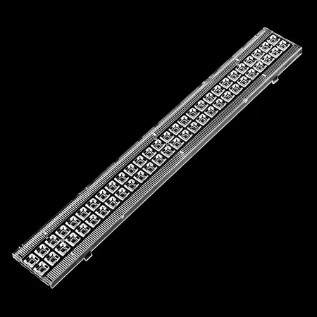1. The lens is specifically designed to be compatible with a linear array or strip of 56 LEDs. It is engineered to match the spacing and arrangement of the LEDs to ensure optimal light distribution and performance.