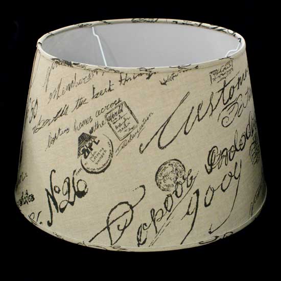 The lamp shade features a drum appearance with a linen finish. The chic calligraphy print completes the lamp with a touch of style. This lamp shade suits a wide variety of table lamps.