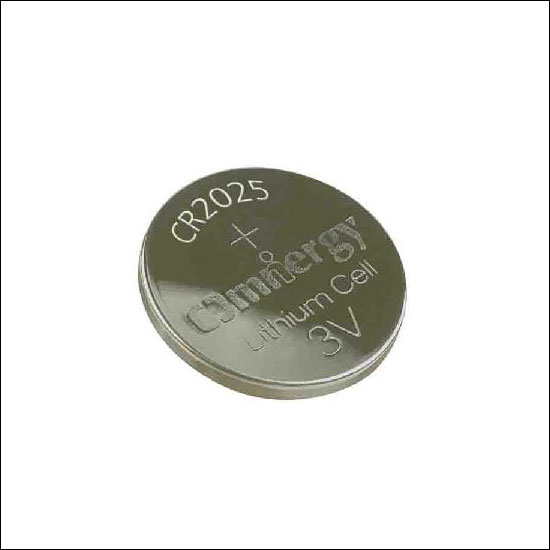 A button cell battery with nominal voltage of 3V.