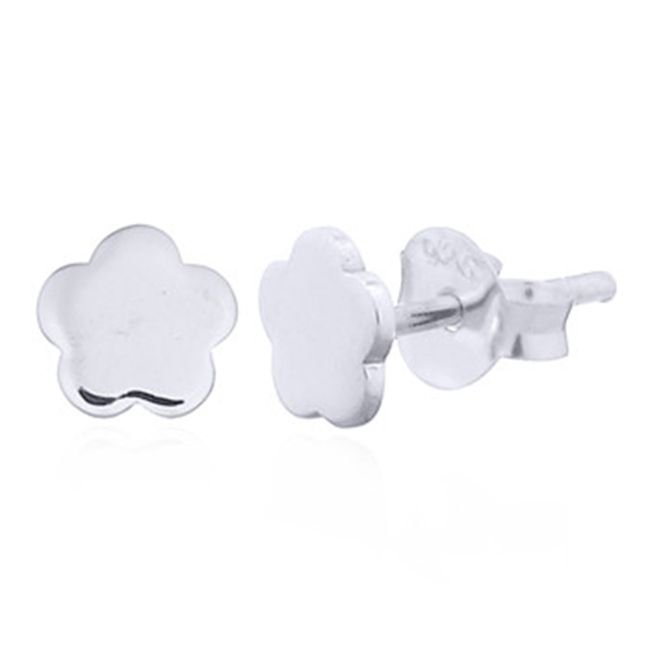 Little Plain Flower Rhodium Plated 925 Stud Earrings