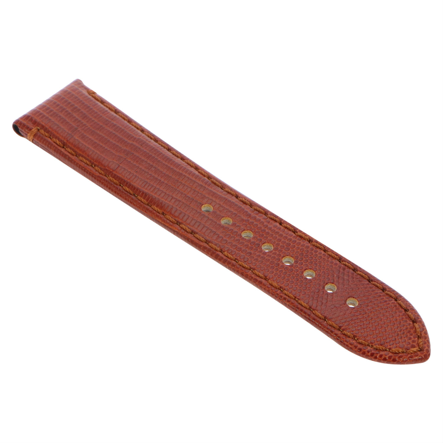 The highlighted watch strap is made of Italian calf leather and is embossed with lizard grain for a refined and subtly exotic look. It is then completed with the classic stainless steel buckle and two loops to ensure a secured fit. With a classy and polished design coming in an array of colors, this watch band would complement watch faces in various designs and styles.
