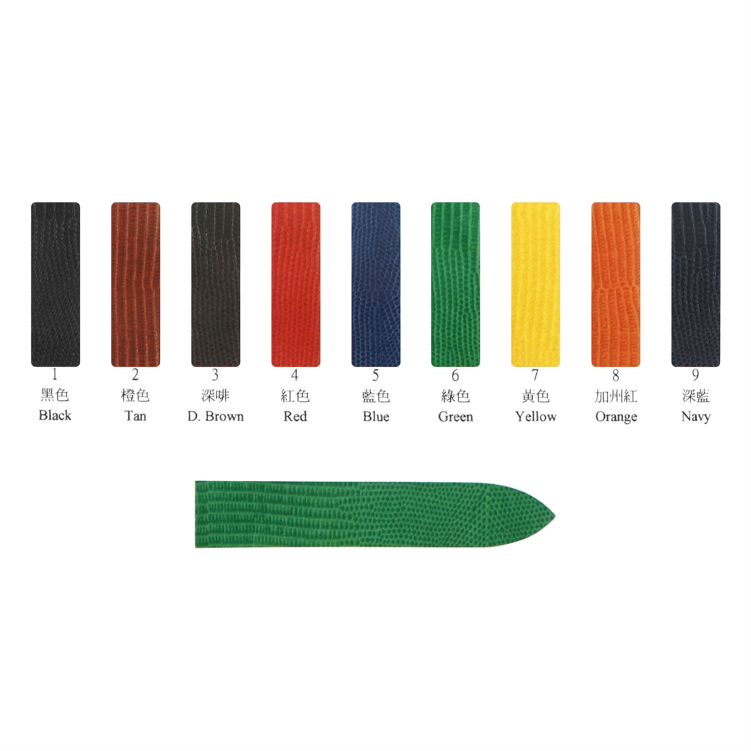 - A watch band embossed with lizard grain (Cono Lizard Print #98).