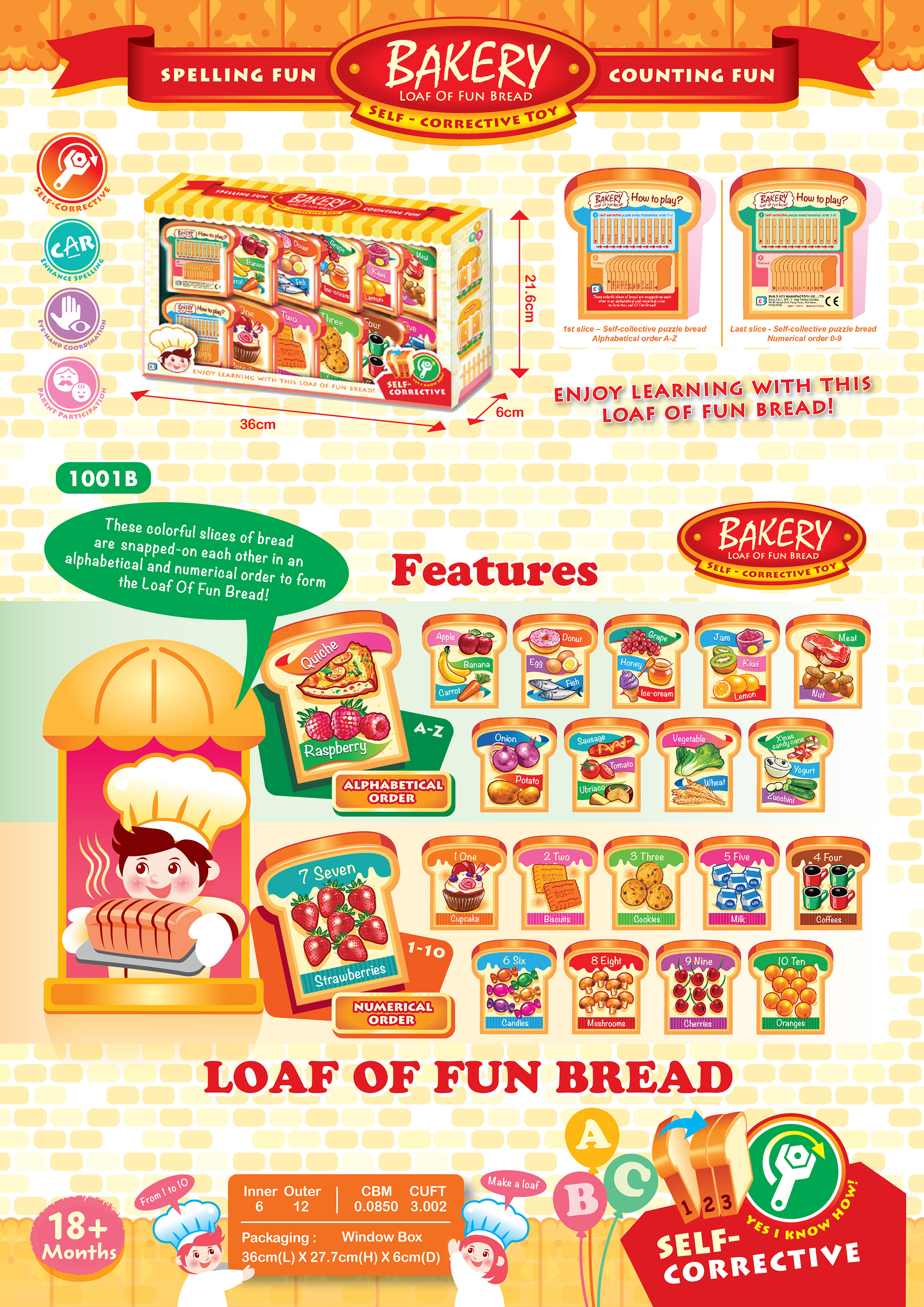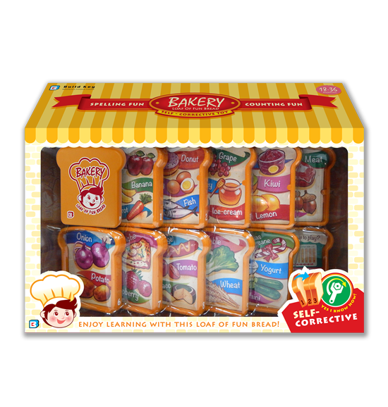 Colorful slices of bread are snapped-on each other in an alphabetical and numerical order to form the Loaf of Fun Bread!