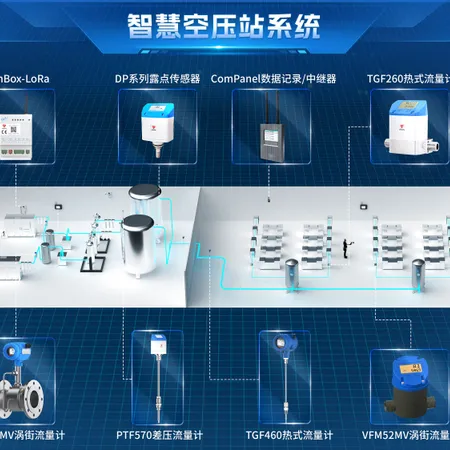Compressed air is one of the crucial power sources in the manufacturing industry, and the improvement of compressed air energy efficiency has received widespread attention over the past 20 years. To achieve the goals of energy conservation and emission reduction, users require reliable and efficient monitoring solutions to integrate various metering instruments within the factory campus. This enables comprehensive access to data such as flow rate, temperature, pressure, and dew point throughout the entire compressed air process—from air generation and post-treatment to transmission and final consumption. Based on this data, the system can be continuously optimized to achieve sustainable improvements in energy efficiency.