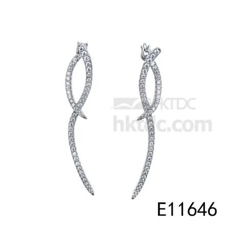 Long Line Stud Earring Elegant Silver Jewelery for Lady