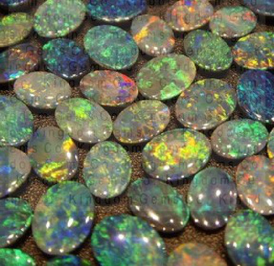 Highlighted is a selection of premium doublet opals cut and polished with brilliant craftsmanship. Delicate reflective play of colour exhibit peculiar beauty of opals for jewelry making.