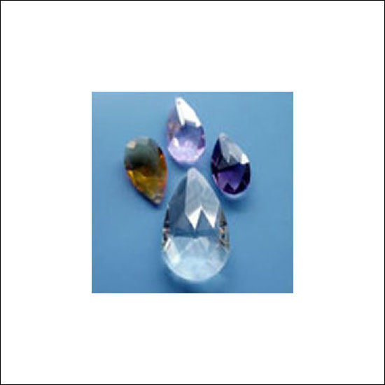 A range of loose chandelier crystal beads in clear, orange and purple colours