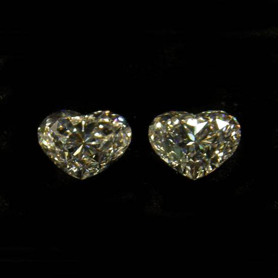 The featured item is a pair of loose diamonds in heart shape. Both are of high quality in terms of colour and would be ideal to be used in grand jewellery designs.