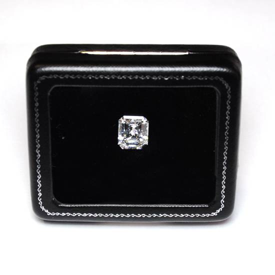 This is a faceted emerald-shaped loose diamond for setting and mounting on jewellery. It is colourless to naked eyes, showing a glamorous and sparkling appearance. The piece is perfect as a main stone of any fine jewellery, especially pendant.