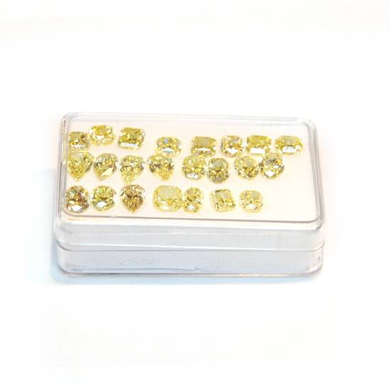 The featured items are loose diamonds in light yellow. They come in various shapes and cuts and are ideal to be used alone or as accents stones on jewellery.
