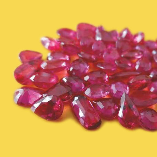 - Faceted rubies and ruby cabochons are available.