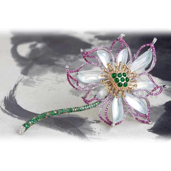 Lotus-Shaped Jade Brooch
