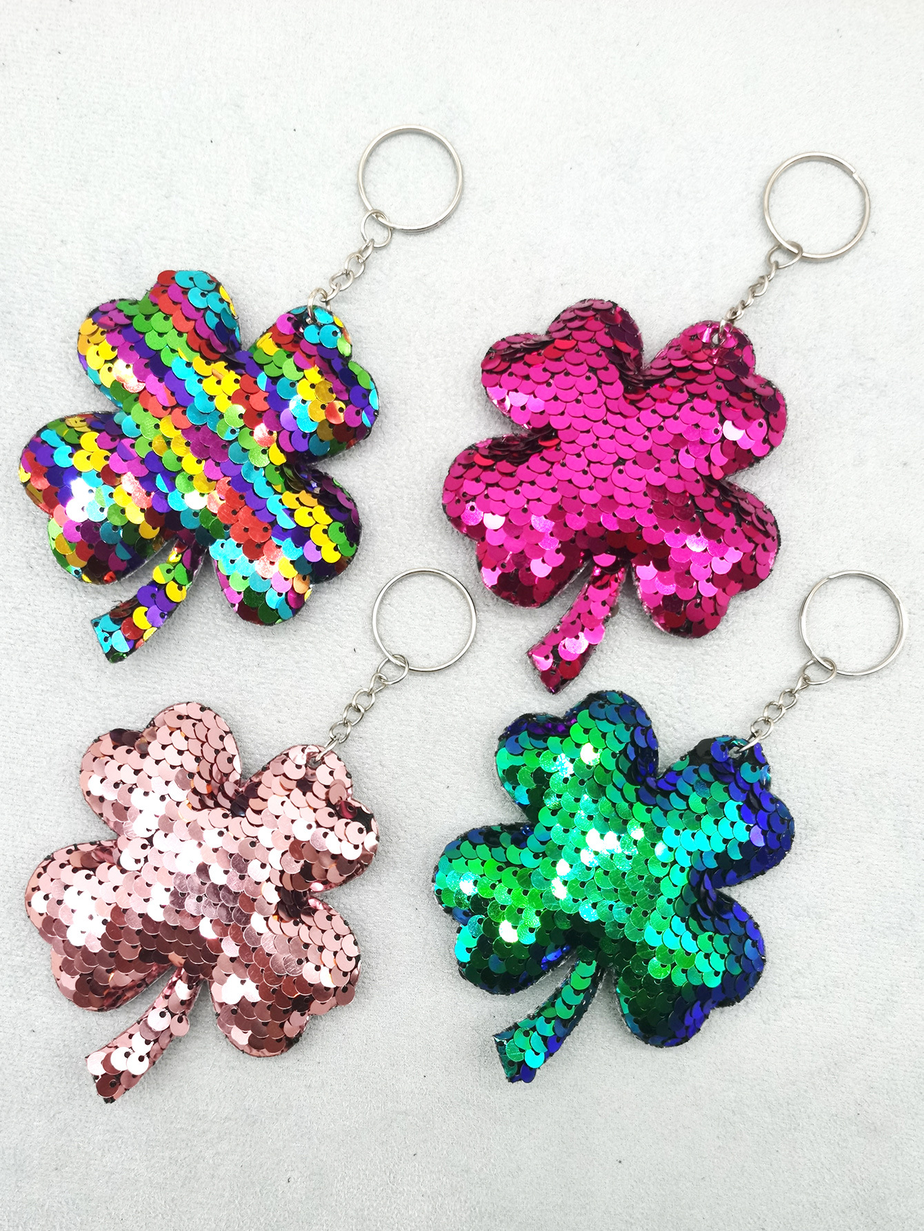 Lucky/4 Leaf Clover Leather / PU Keychain with Sequin