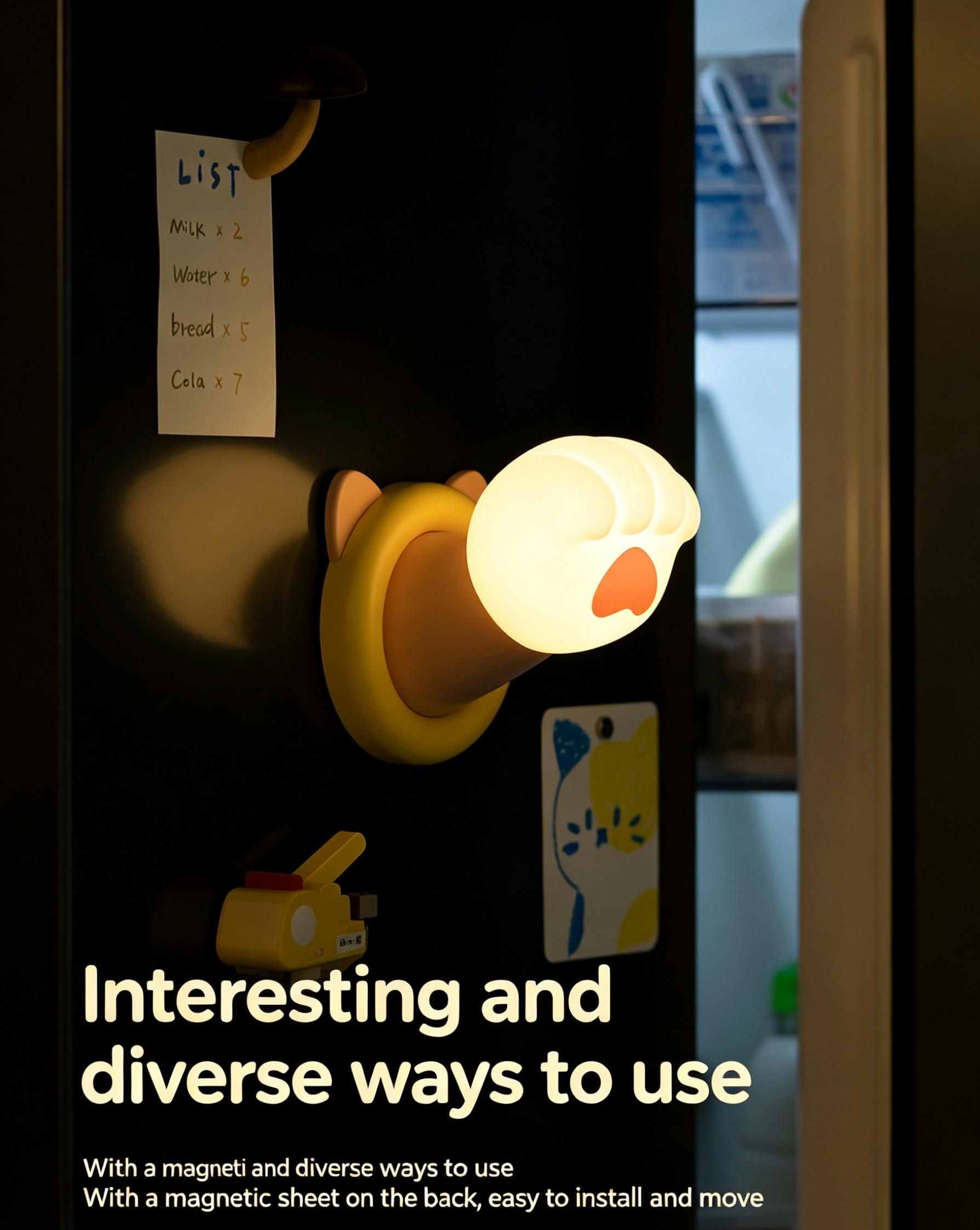 - Cute & Versatile Design: Adorable cat paw shape with a unique "reaching out" posture. It can be placed on desks,(magnetically attached) to fridges/walls, or used as a bedside light. Perfect for cat lovers and lucky-themed decor.