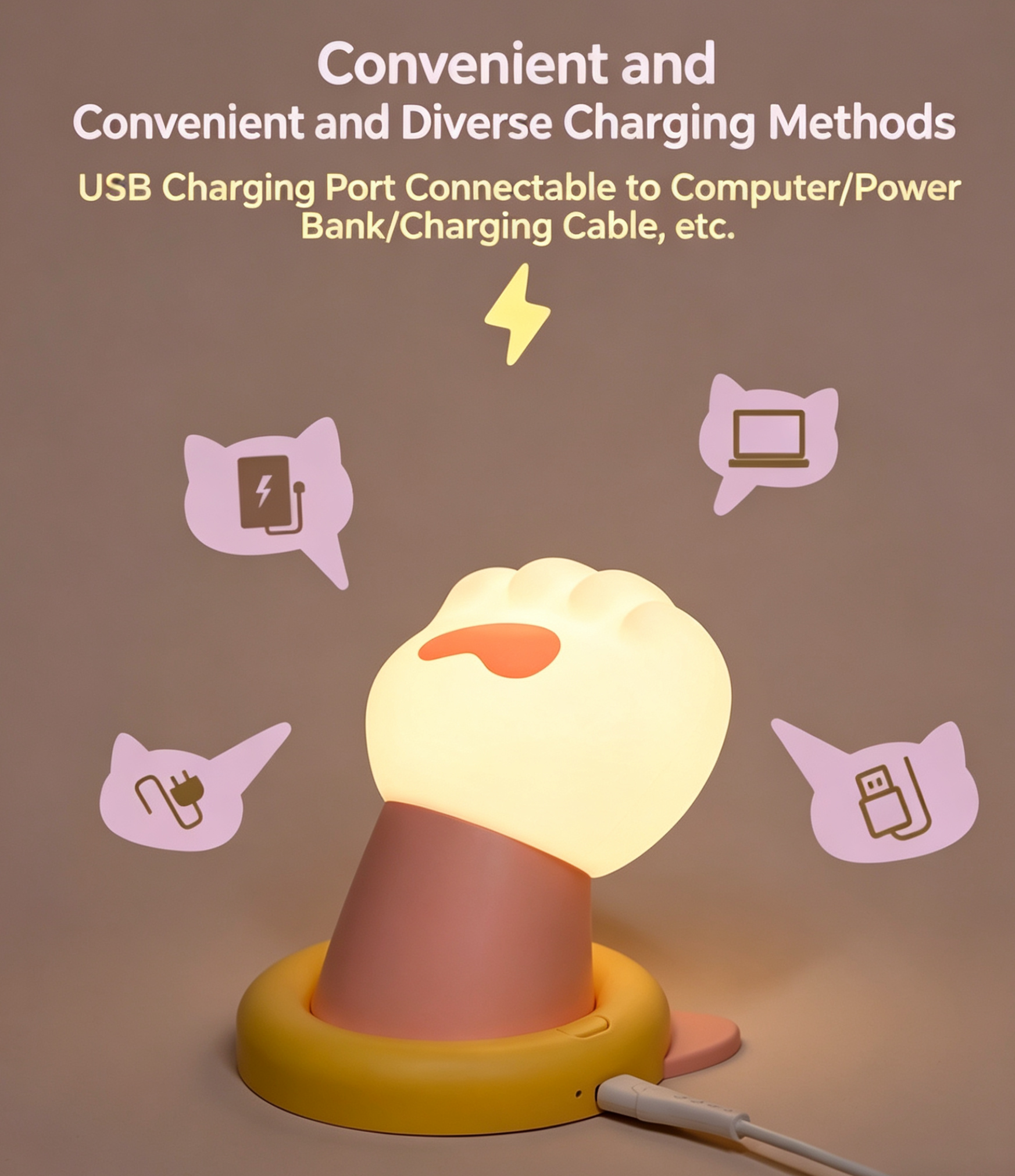 Meet your cute new companion—the Lucky Cat Paw Night Light! Designed like a playful cat’s paw with a warm "reaching out" gesture, this lamp is not just a practical light but also a sweet decorative piece for your space. Whether for bedtime companionship, study/ work lighting, or room decor, it brings cozy vibes and good luck to you.