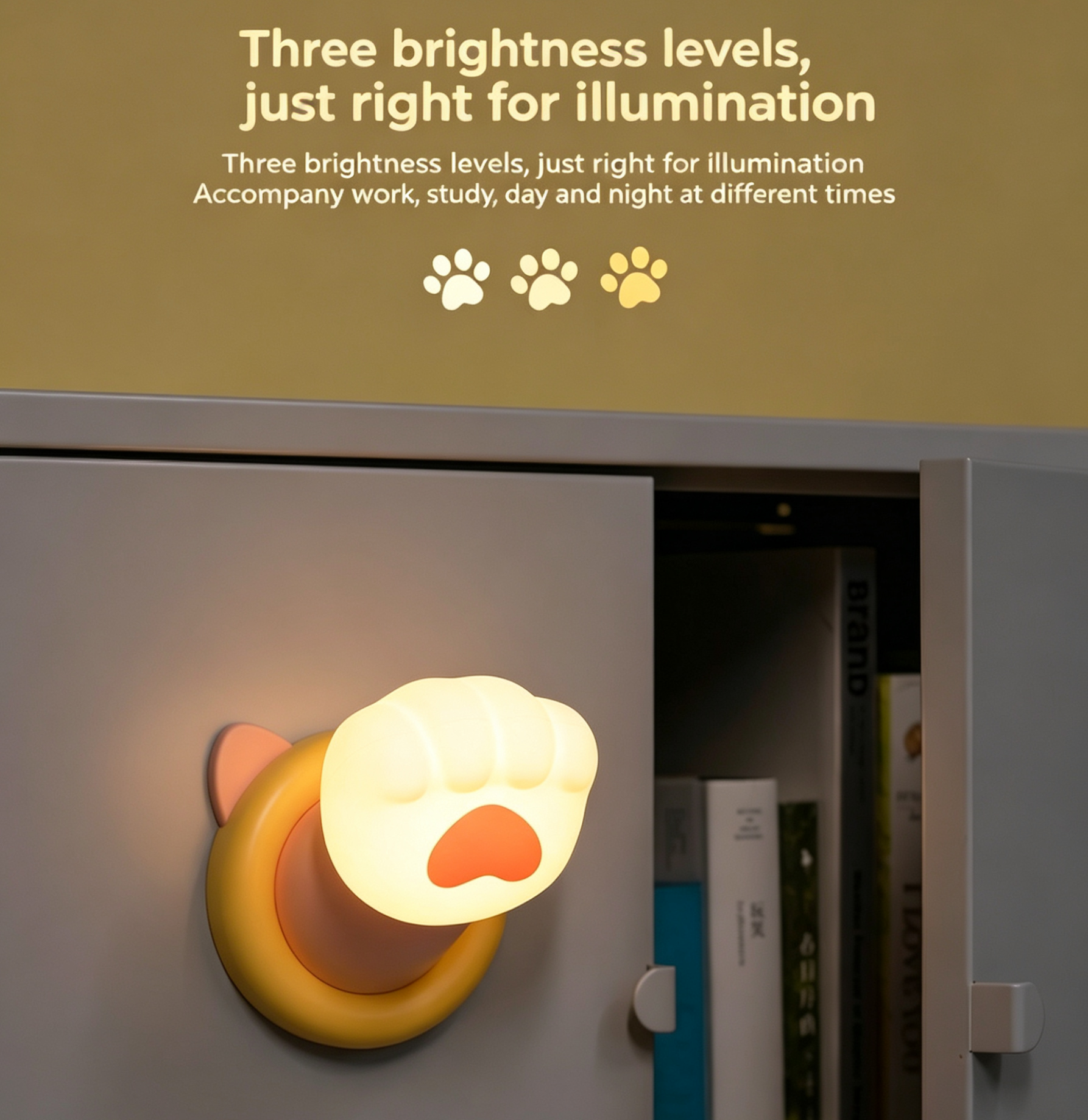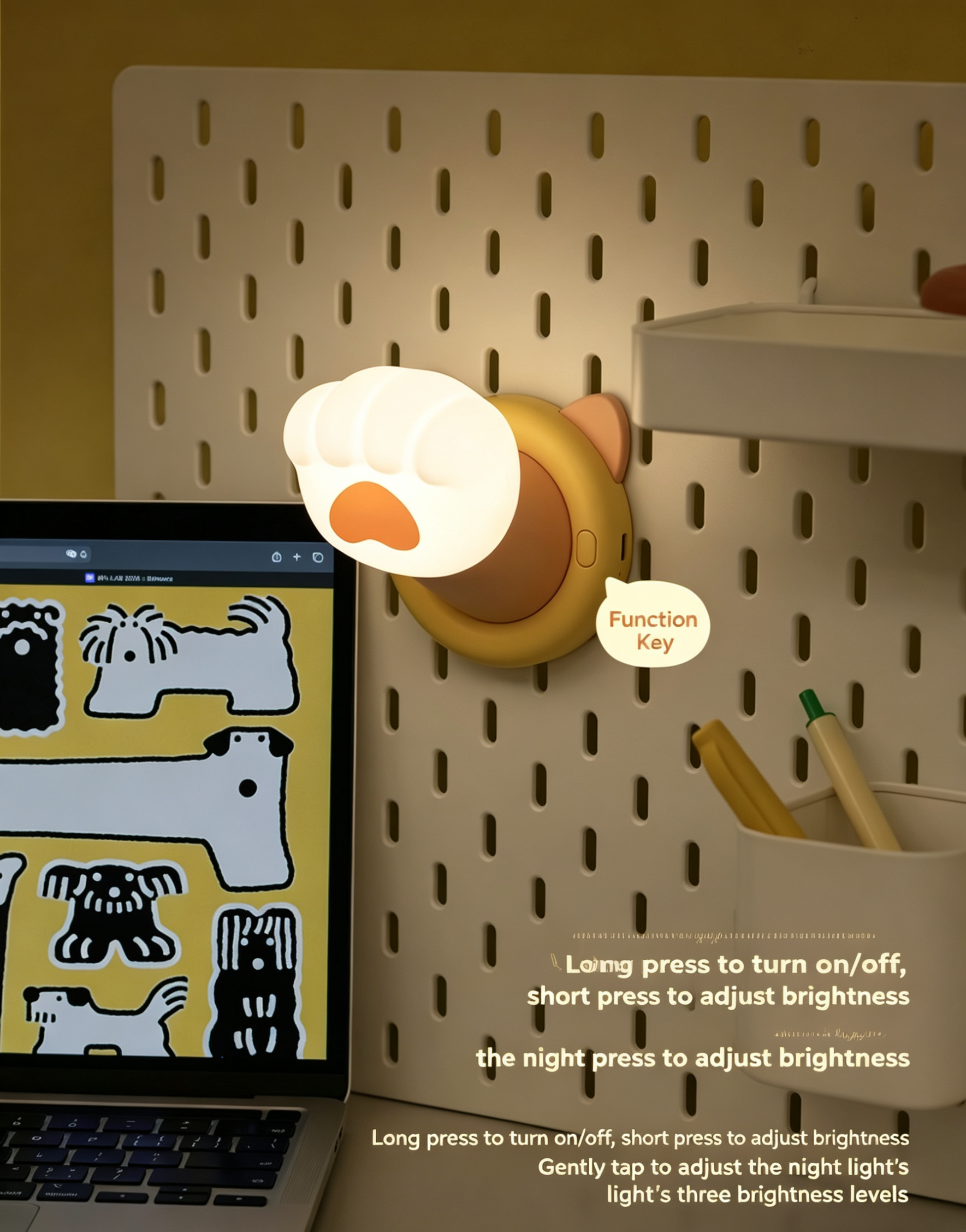 - Dual Control Modes: Easy to operate with short/long presses (long press to turn on/off, short press to adjust brightness). Also supports tap control: tap the soft silicone paw to switch brightness modes effortlessly.