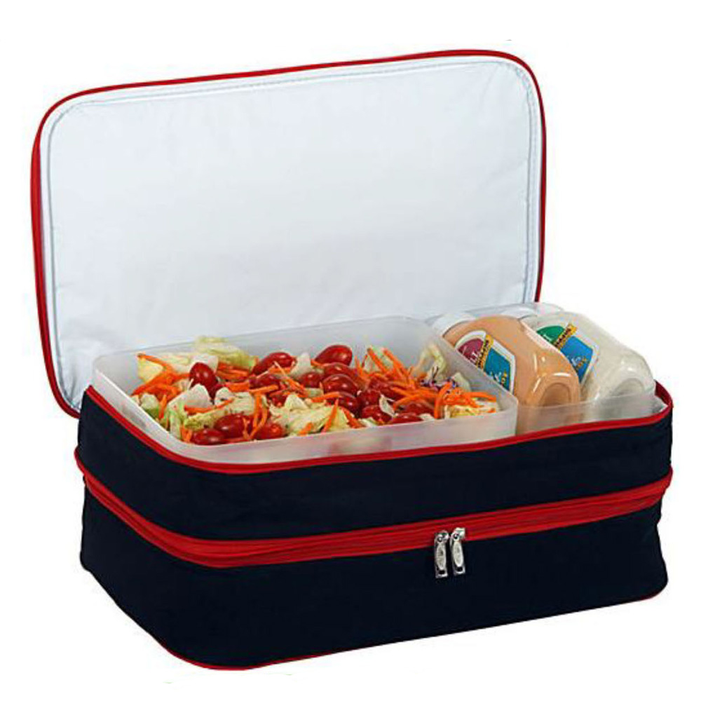 the bag made by 600D nylon with 3mm epe foam and silver opp backing, handle in PP strap.