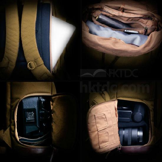 Presented here is a middle size backpack designed for carrying a DSLR camera. The water-splash proof nylon construction allows tough and durable use. Featuring a stylish design, this camera knapsack complements your fashionable outfits nicely