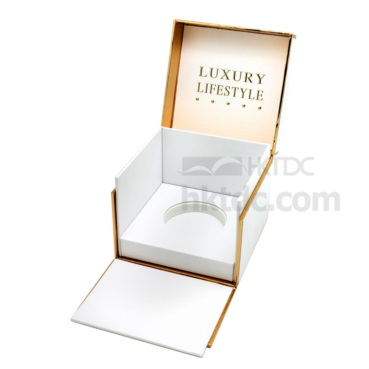 It is made of luxury fancy paper with hot stamping and embossing effect, front flap can be opened for decoration.