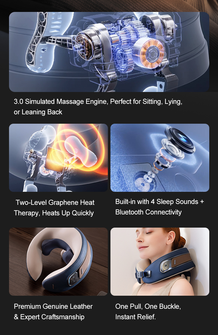 Top-Grain Leather and Expert Craftsmanship, Significantly Extending Product Lifespan4 Massage Modes for Full-Scenario CoverageOuter Layer: Patented Support Frame |Inner Layer: Soft Memory Foam2500mAh High-Capacity Battery: 10-Day Use with 12 Minutes Daily