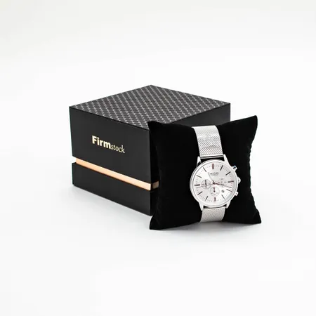 Inside : wrapped by golden paper, laminate grey velvet , with pillow for watch