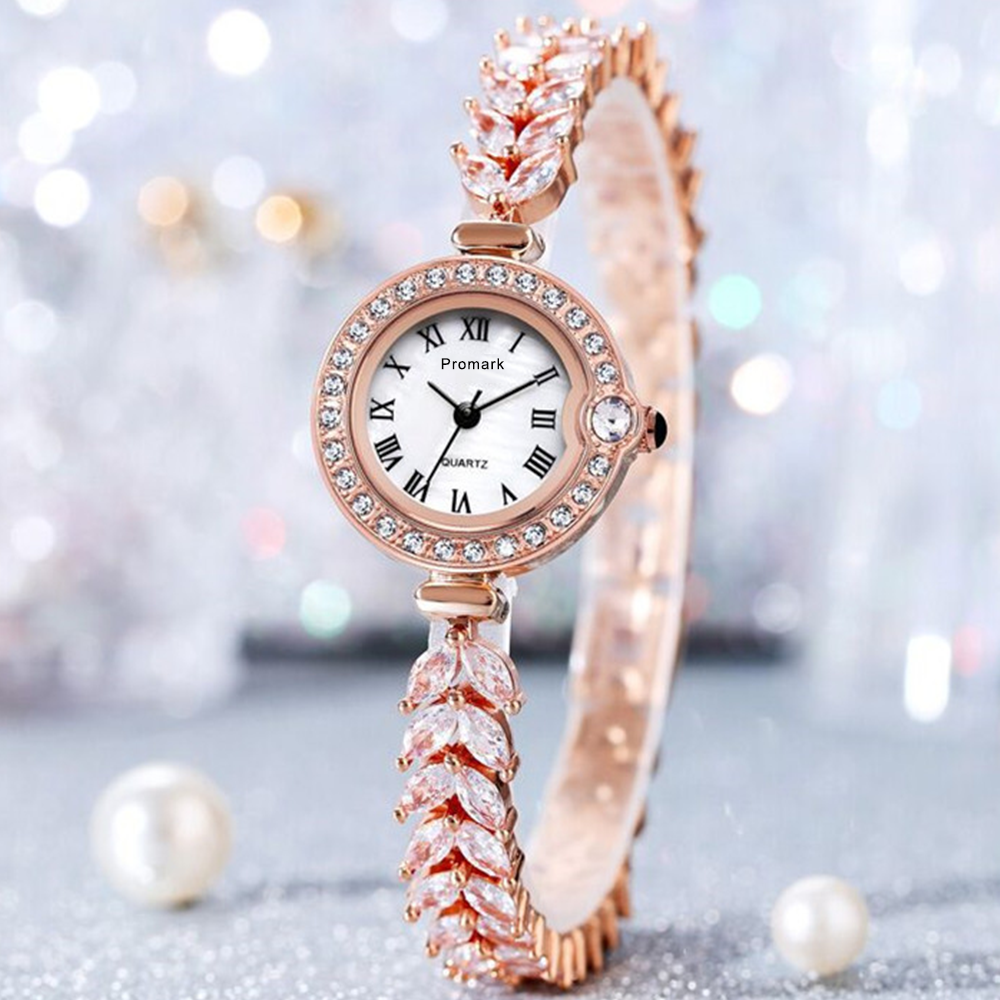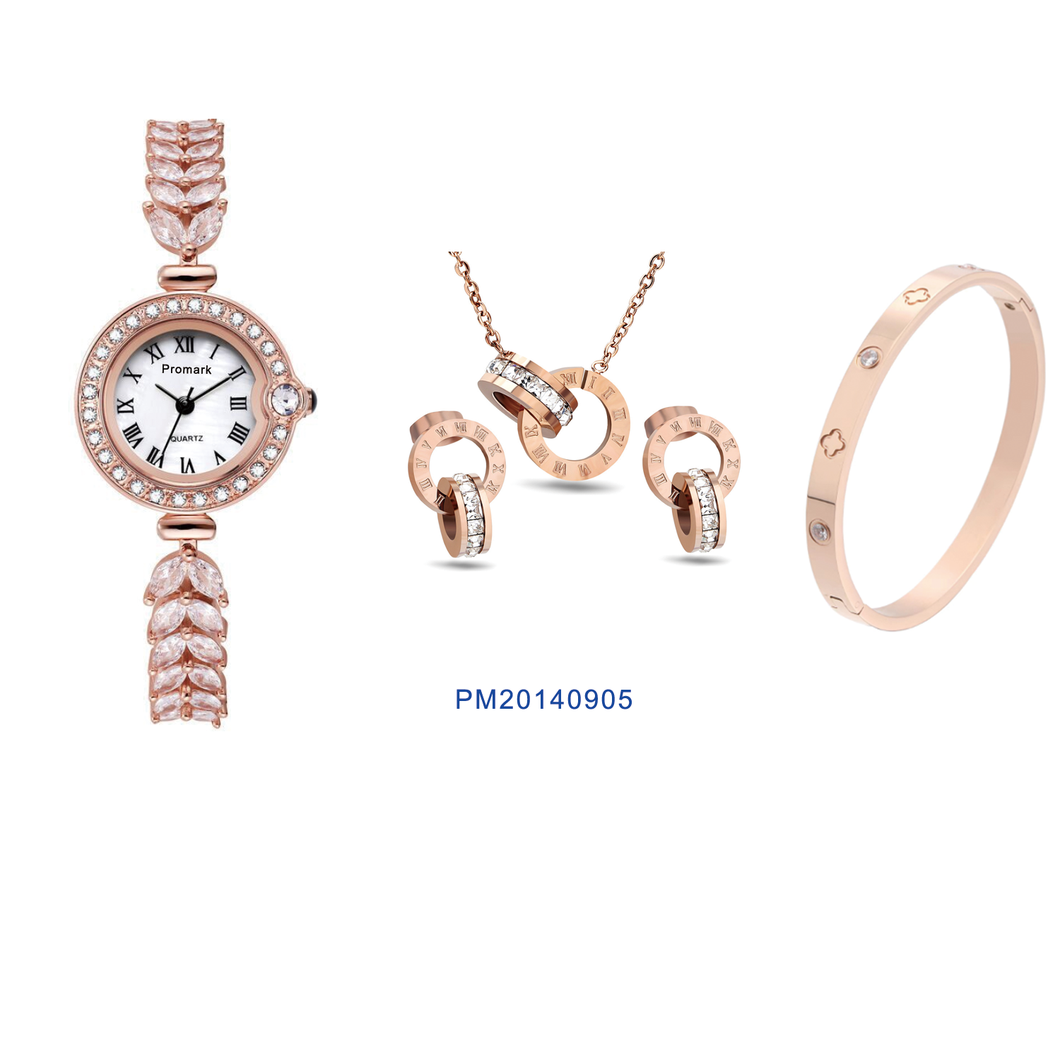 Luxury Quartz Watch Stainless Steel Jewelry Set Rome number Necklace Earrings Bangle Set for Women's Jewelry Gift