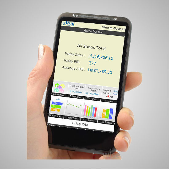 eRun M-Business is a mobile app available on iOS and Android that arms your management team with perfomance reports at their finger tips for making effective responses and speeding up intelligent decision making. You can view important information through graphs, charts and tables and check year-to-date sales target performance of shops and compare the results with that of the past months or years.