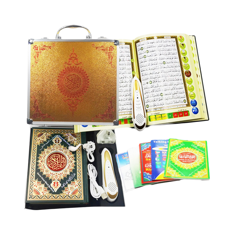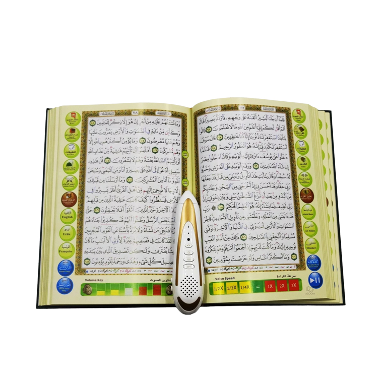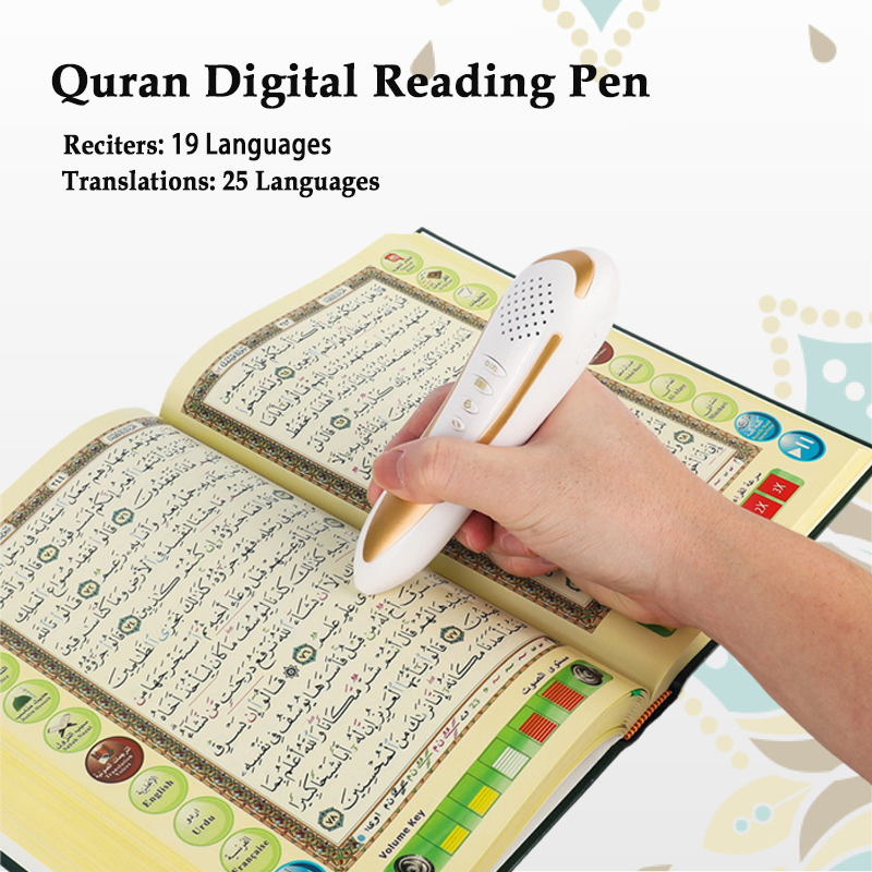 Advanced Settings: Quran reading pen built-in a speaker, a rechargeable Li-battery, an 4GB/8GB/16GB/32GB TF card and a USB port to connect to PC.