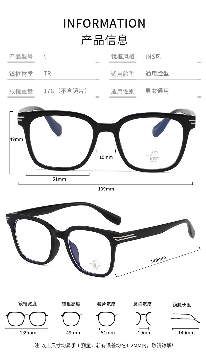 Weight: Only 17g(Without lens), comfortable without pressure, suitable for face.