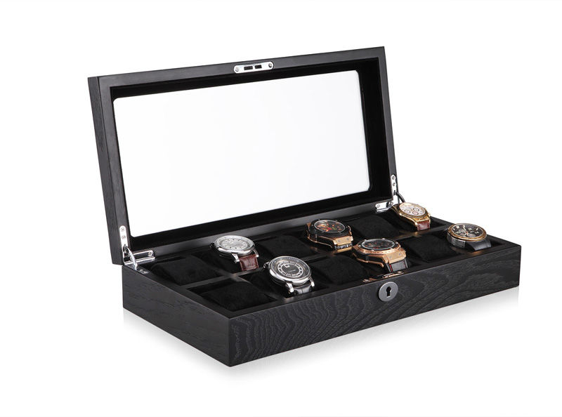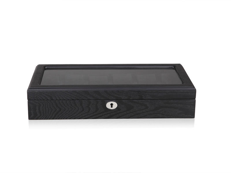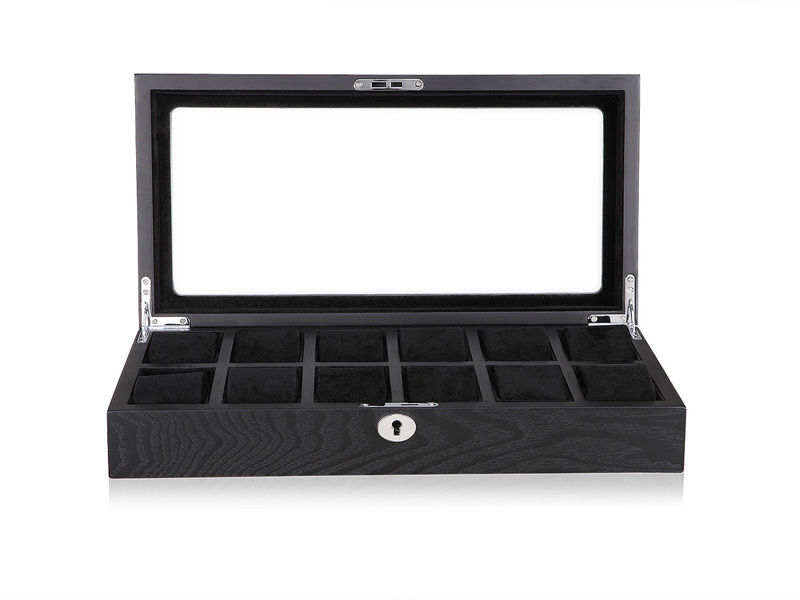 MDF 12 Slot Watch Box Black / Wooden Watch Display Case For Men