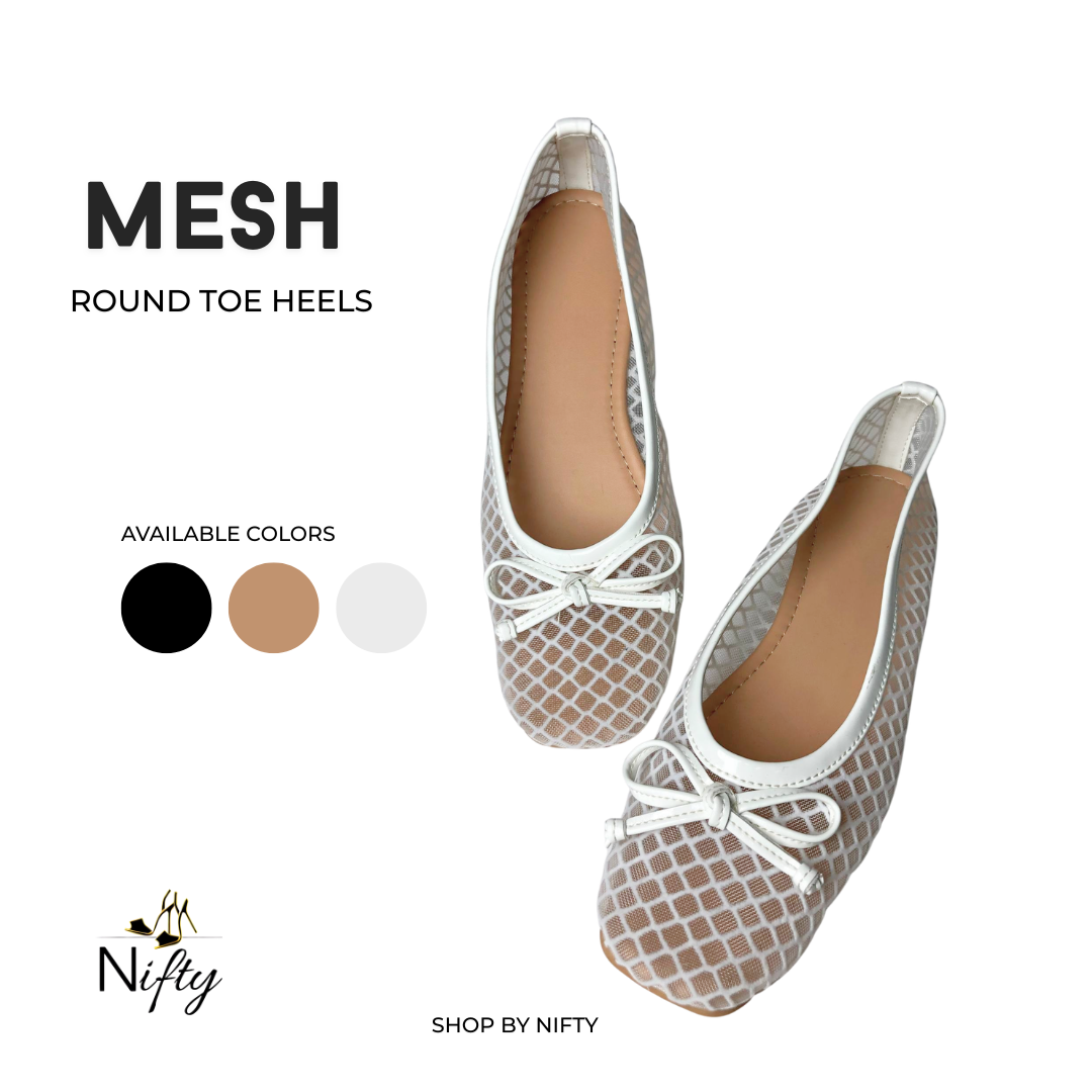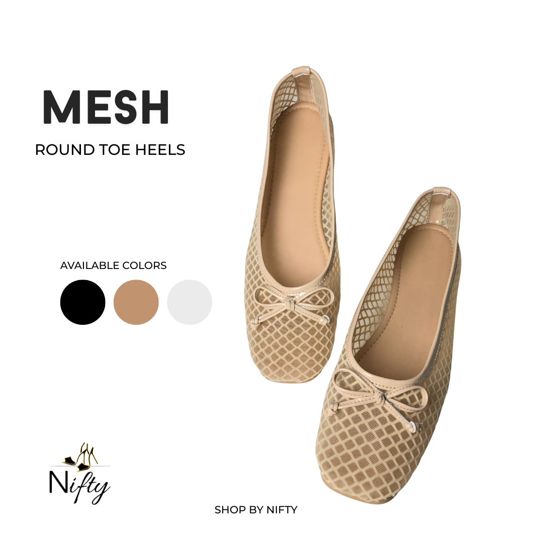 Meet MESH, the heels that combine comfort with a soft, feminine edge. Designed with a breathable mesh pattern and a delicate bow detail, this pair brings a light, airy feel to your everyday style. The round toe and low heel offer a balanced mix of comfort and elegance — perfect for all-day wear.