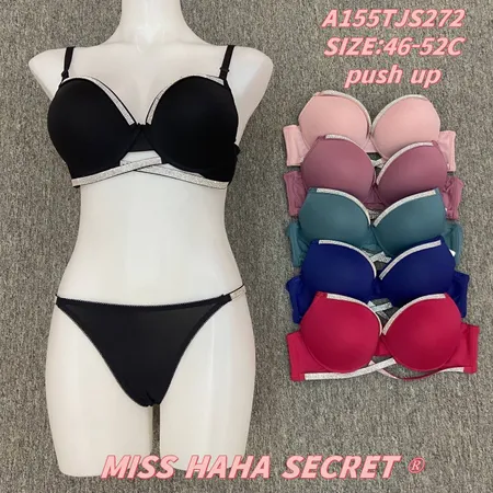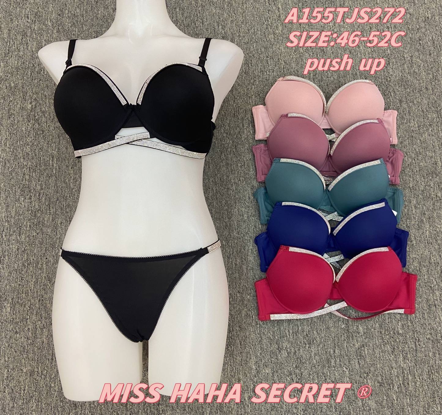 The MISS HAHA SECRET Push Up Bra Set is designed to enhance your silhouette with push-up technology. It features elegant rhinestone details that add a glamorous touch, available in a variety of colors including black, pink, mauve, teal, navy, and red. Sized 46-52C, this set includes a matching panty, combining style and comfort. It’s suitable for those seeking a fashionable lingerie option that balances allure and wearability, ideal for both everyday use and special occasions.