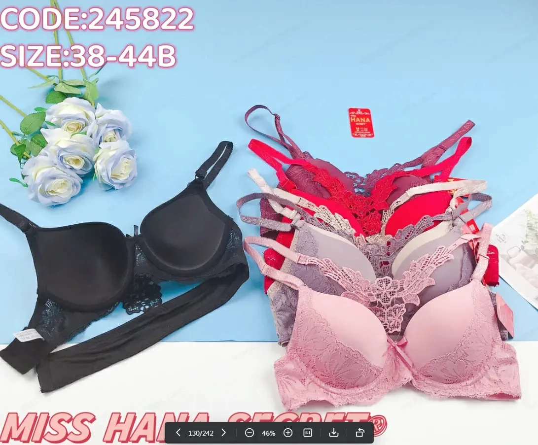 This MISS HANA SECRET bra combines comfort and elegance, designed for plus-size (38-44B) wearers. It features soft, smooth cup fabric paired with delicate lace detailing for a feminine touch, while the push-up structure offers gentle shaping and support. Available in versatile colors (black, pink, red, etc.), it suits daily wear and various outfits. The adjustable straps and secure fit ensure all-day comfort, making it a practical and stylish choice for your lingerie collection.