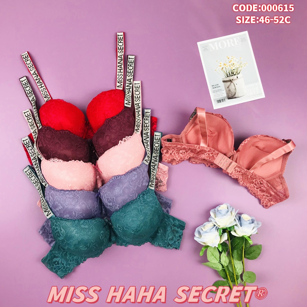 Indulge in elegance and comfort with this MISS HANA SECRET lace push-up bra! Available in rich hues (red, burgundy, pink, purple, teal) and crafted with delicate floral lace, each bra features branded "MISS HANA SECRET" straps for a stylish finish. The push-up design provides subtle lift, while the soft fabric ensures all-day wearability. Sized 46-52C (code: 000615), this collection blends romantic detailing with practicality—perfect for elevating your everyday lingerie.