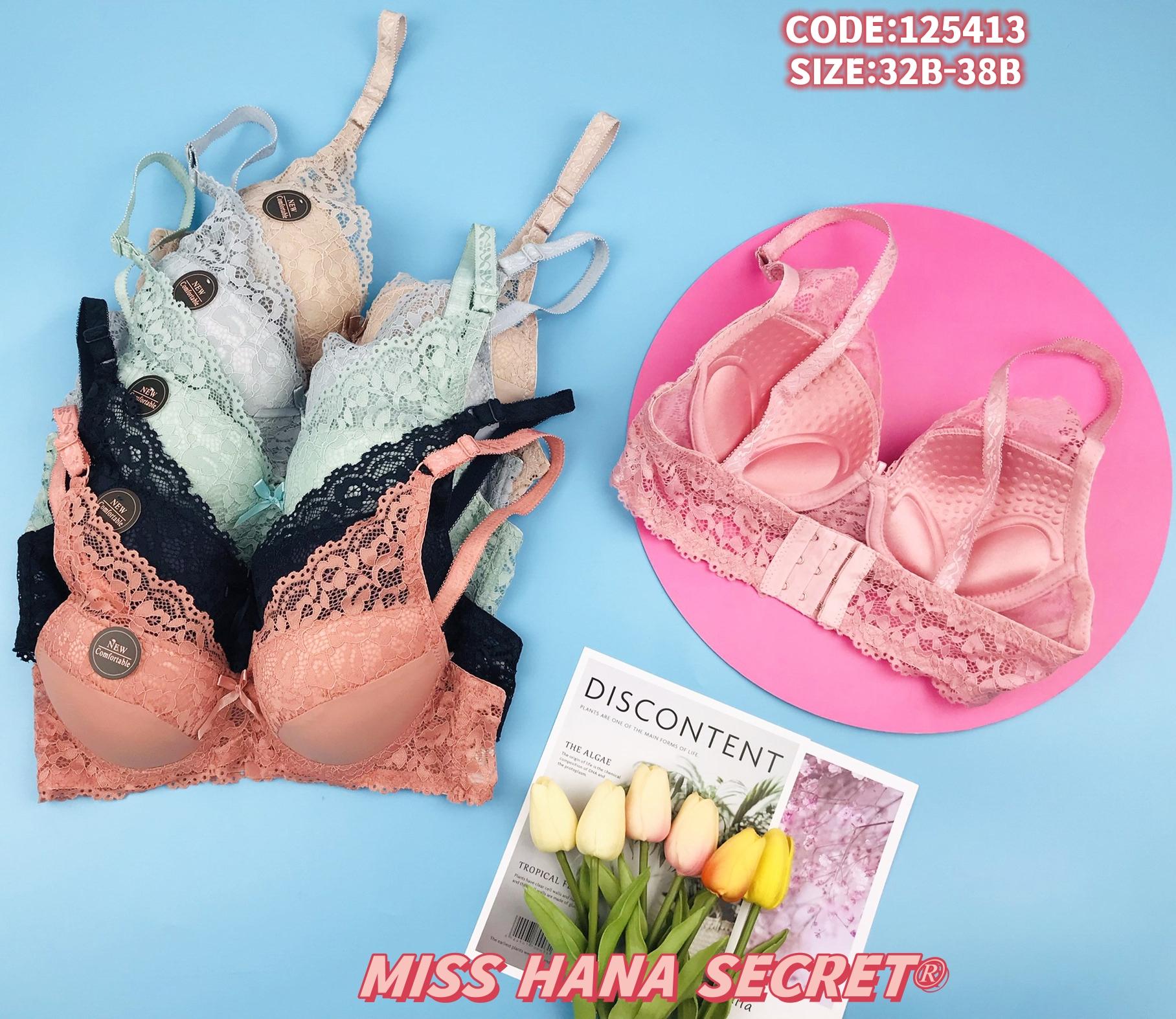 This is MISS HANA SECRET lace bras (Code:125413, Size 32B-38B), featuring delicate lace detailing and a soft, supportive design. Key attributes include: