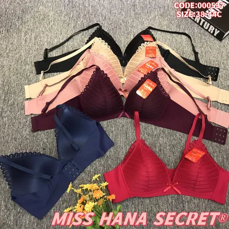 Elevate your lingerie collection with the MISS HANA SECRET Triangle Bra! Crafted with delicate lace detailing and soft fabric, this bra offers a comfortable fit and feminine style. Available in classic & trendy hues (black, beige, pink, burgundy, navy, red), it’s perfect for daily wear or special occasions. Features adjustable straps for a customized fit.