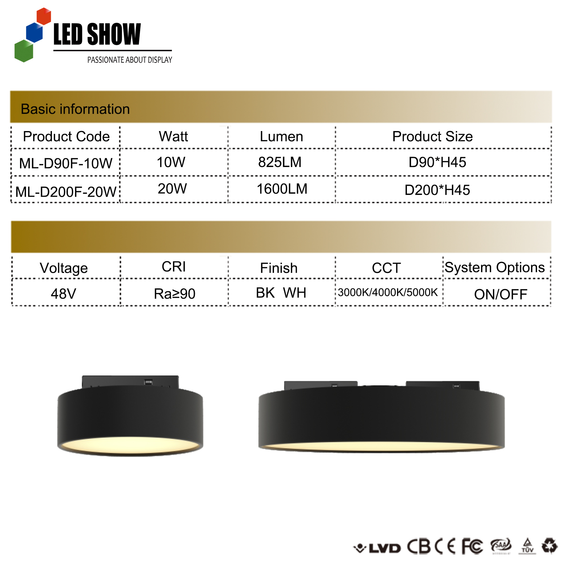ML Series Ultra-Wide Beam Track Lights 10W/20W 48V 180°/200° Beam Angle 1600LM High Lumen Commercial Flood Lighting