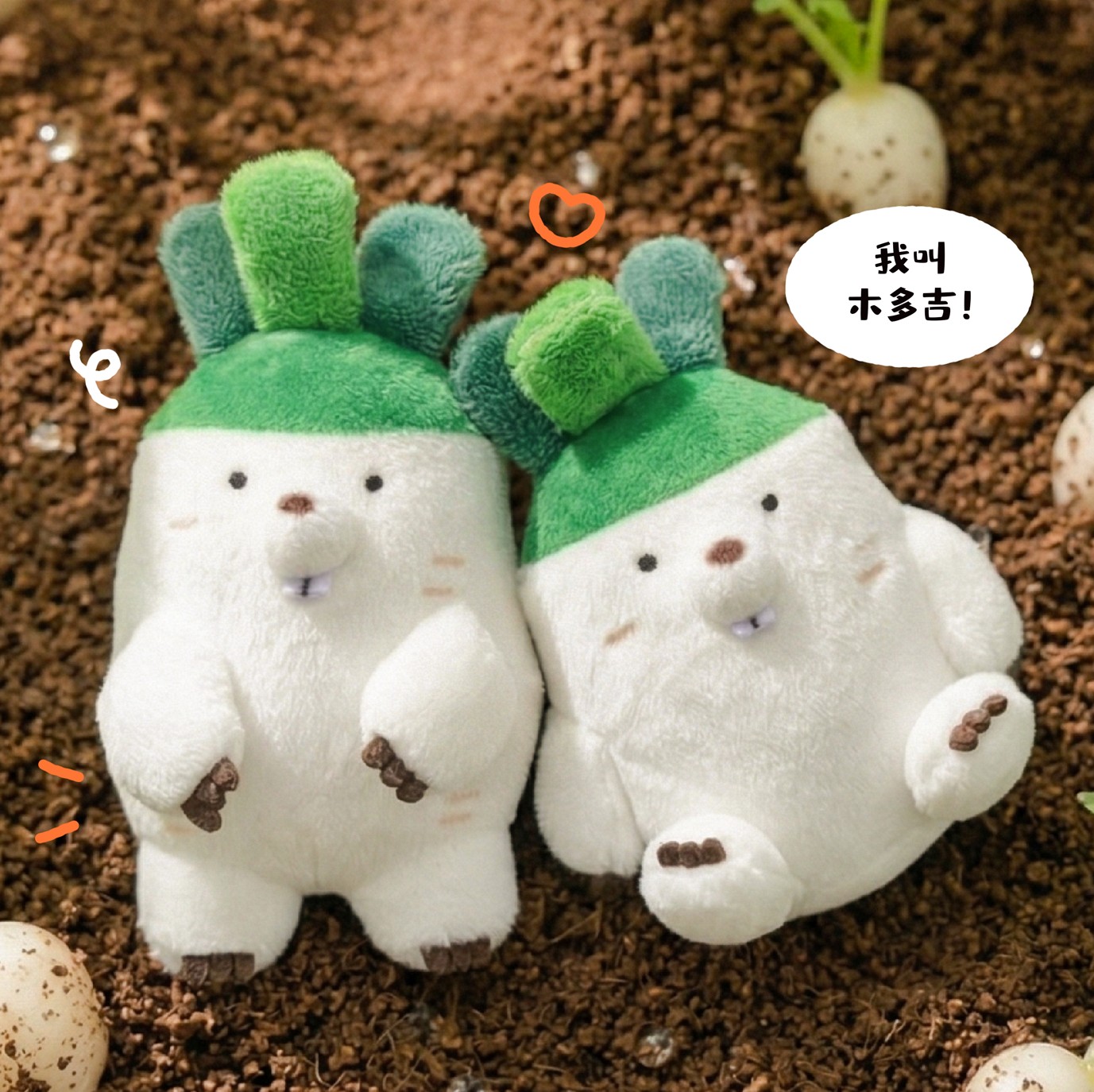 Muduoji is a signature character with a unique identity, combining the image of a radish and a mole into one adorable design.