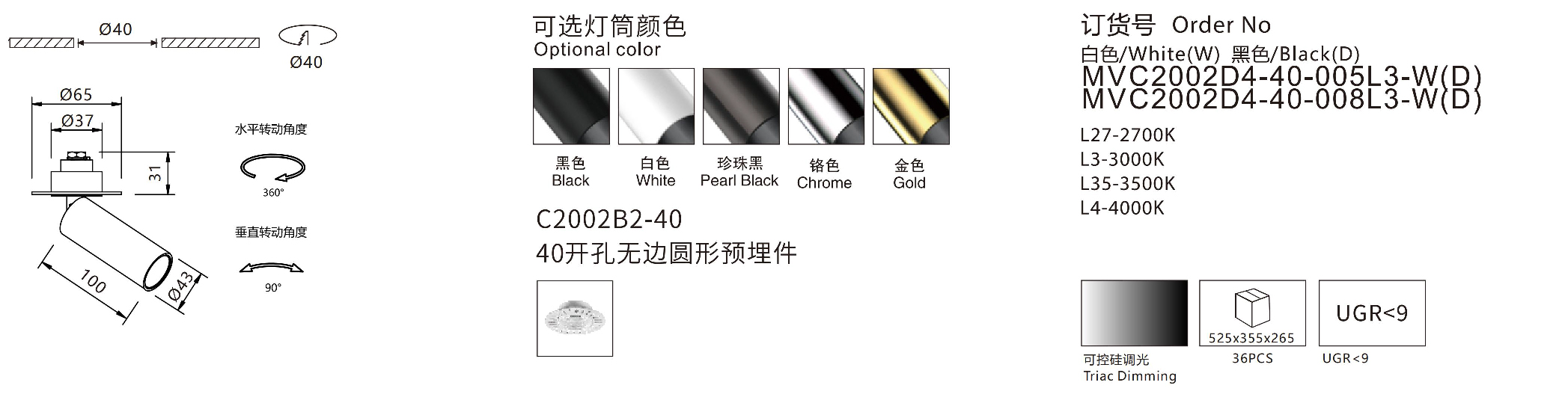 功率: 5W/8W色温: 2700K/3000K/3500K/4000K/5000K光束角: 8°, 12°, 18°, 24°, 36°, 60°