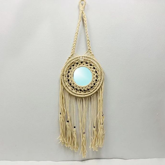 Add a touch of bohemian flair to your home with the round macrame wall-hanging mirror. Its intricate macrame design and vintage-inspired look bring a unique charm to any room. Whether hung alone or grouped with other mirrors, this ornate piece is a must-have for those seeking a vintage rustic style in their home decor.