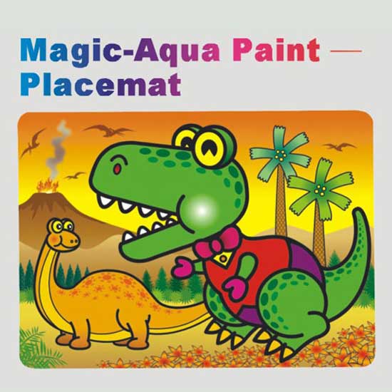 Highlighted here is a lovely placemat with a dinosaur-themed design. Just paint with water, and then the colors will appear. This magic-aqua paint placemat adds an adorable accent to your dining table.