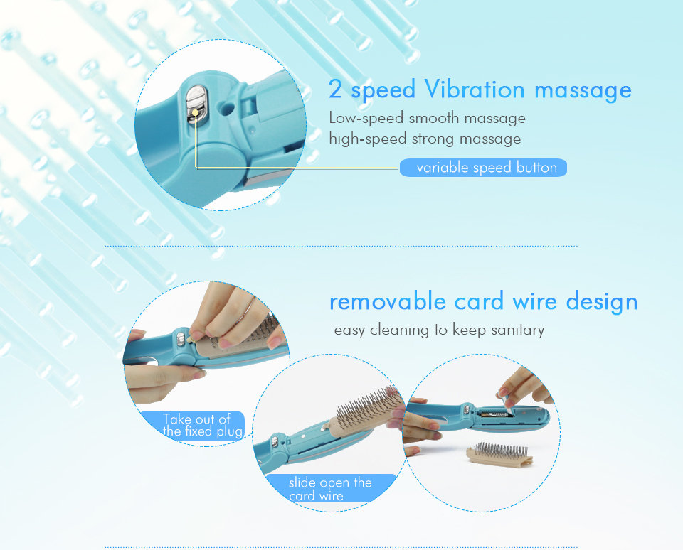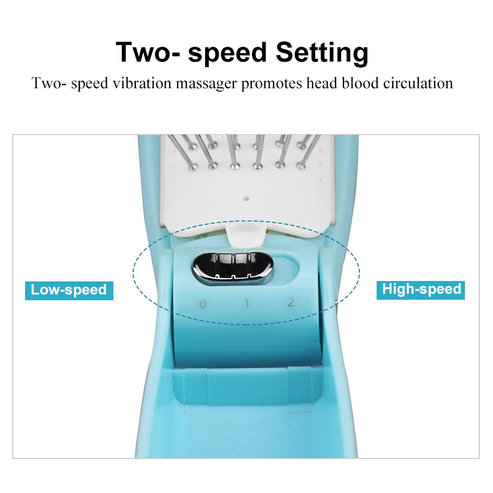 - Massages the head with 2 speed-setting vibrations to promote blood circulation and makes the hair more healthy and shiny.