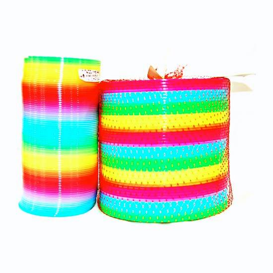 This jumping magic spring features rainbow colors. It can be played with at stepped locations like staircases and piles of boxes. Children can learn basic physical phenomena when they play with this item.