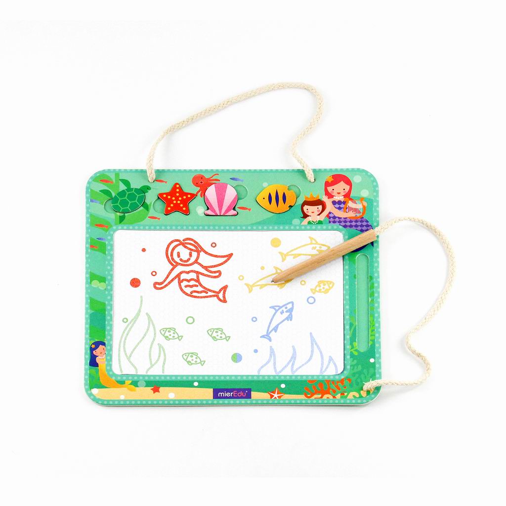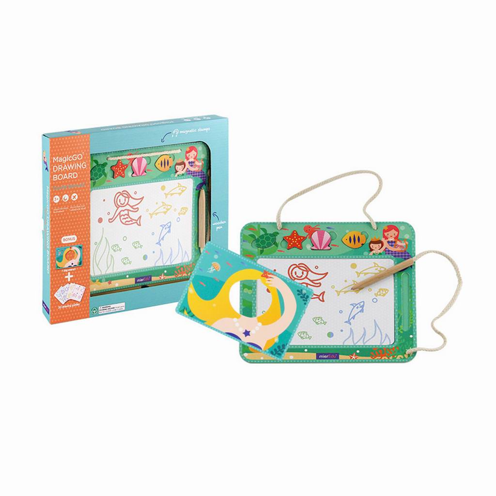 A beautiful eco-friendly magnetic drawing board for hours of creative play. Doodle, write or draw with the attached stylus pen and use four themed magnetic stamps to create your masterpieces.