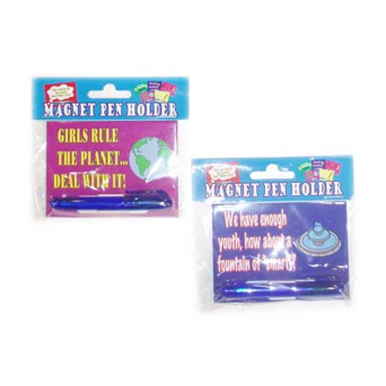 As show is a magnetic pen holder for holding pens on the fridge. The magnet is designed with funny words that will make you smile. This pen holder makes a handy choice for you to take notes anytime.