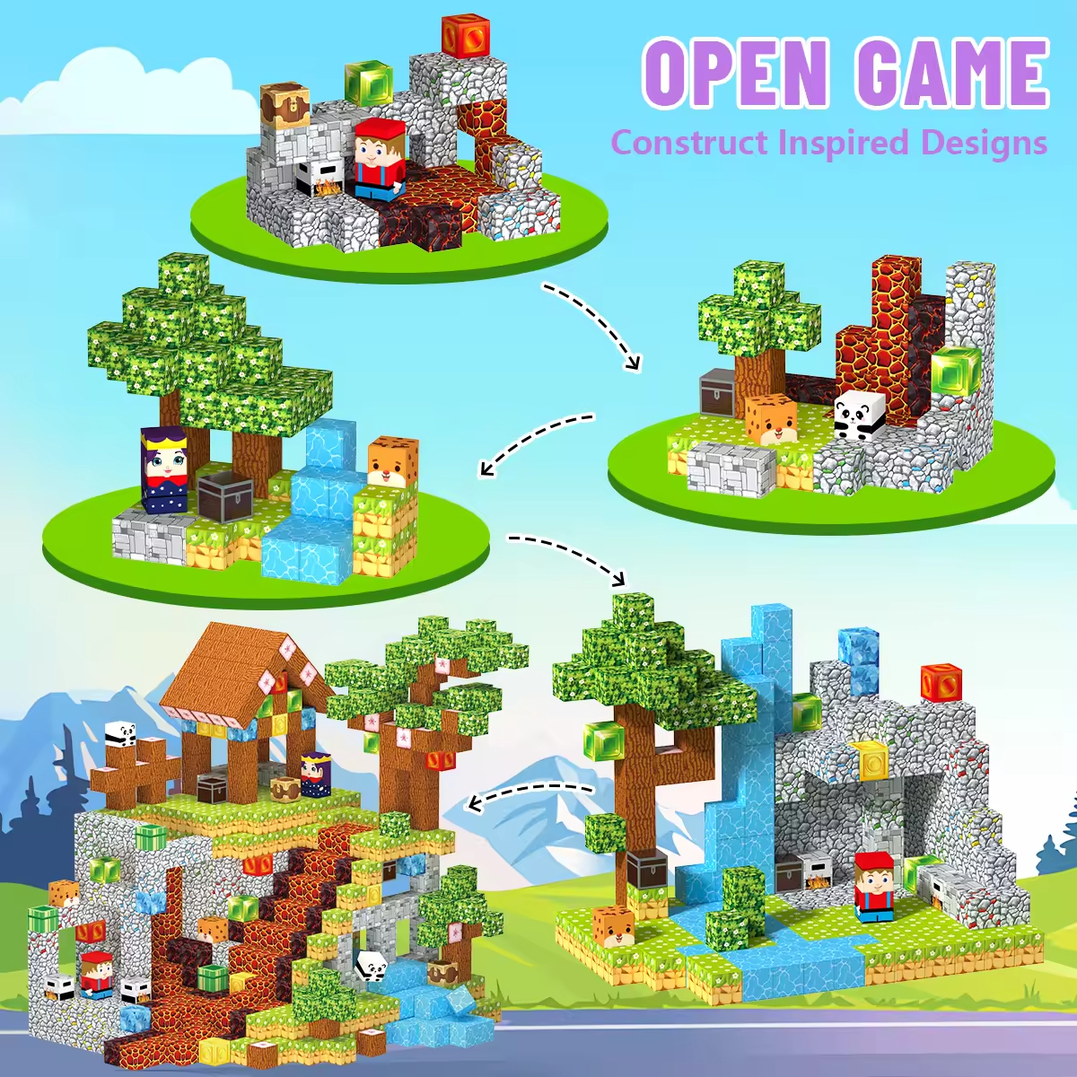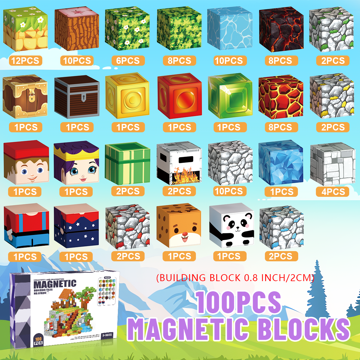 Magnetic Blocks 100PCS Magnetic Building Blocks Castle Garden STEM Magnetic Building Cubes for Kids Toys Build Cube STEM Games