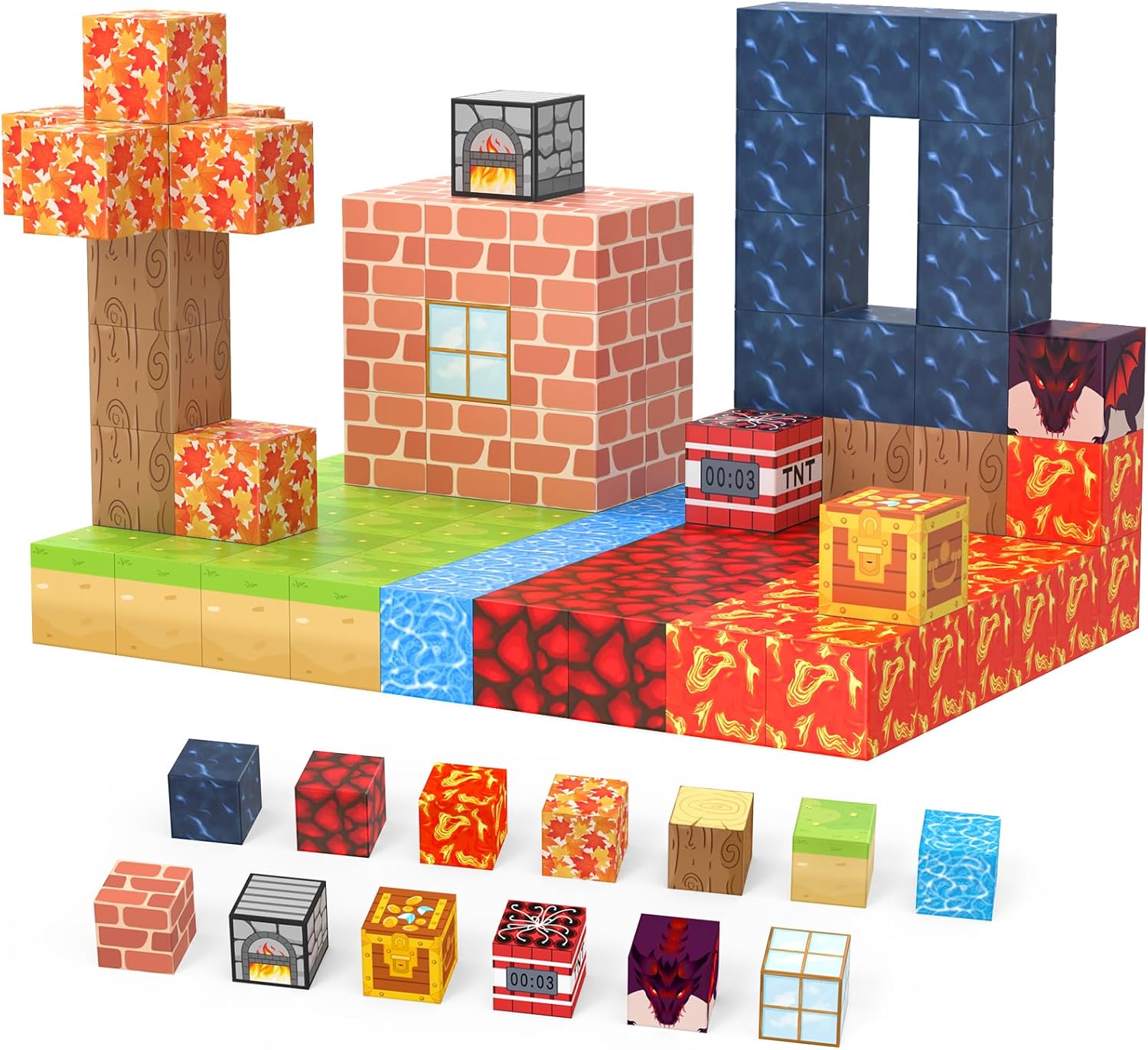 Unleash creativity and build a magical world with the 100-piece magnetic world set! Perfect for young builders, this set includes: